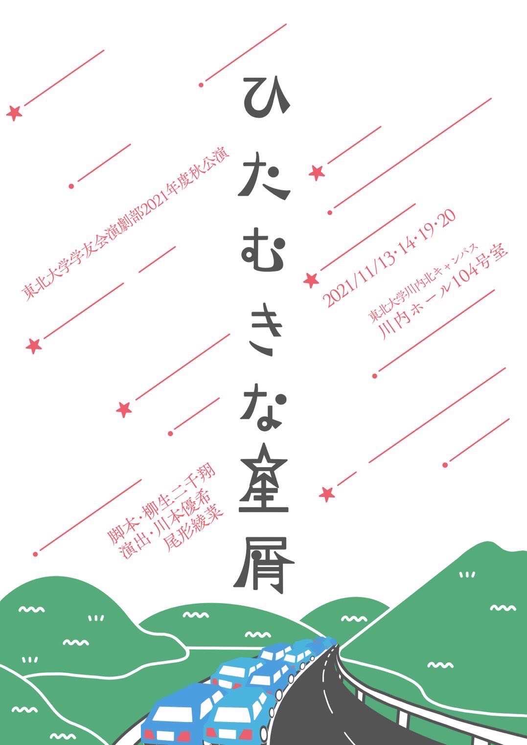 2021年度秋公演 「ひたむきな星屑」 2021/11/13 - 20 脚本:柳生二千翔 演出:川本優希、尾形綾菜 |